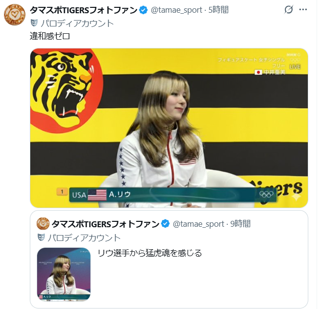 アリサ・リュウもしくはアリサ・リウ選手のお父さんは弁護士さんで、天安門事件のときに中国からアメリカに亡命した人。お母さんは匿名の卵子提供者、いわゆる代理母だとか。きょうだい5人ともそうなのかな。お父さんはもしかしてLGBT?